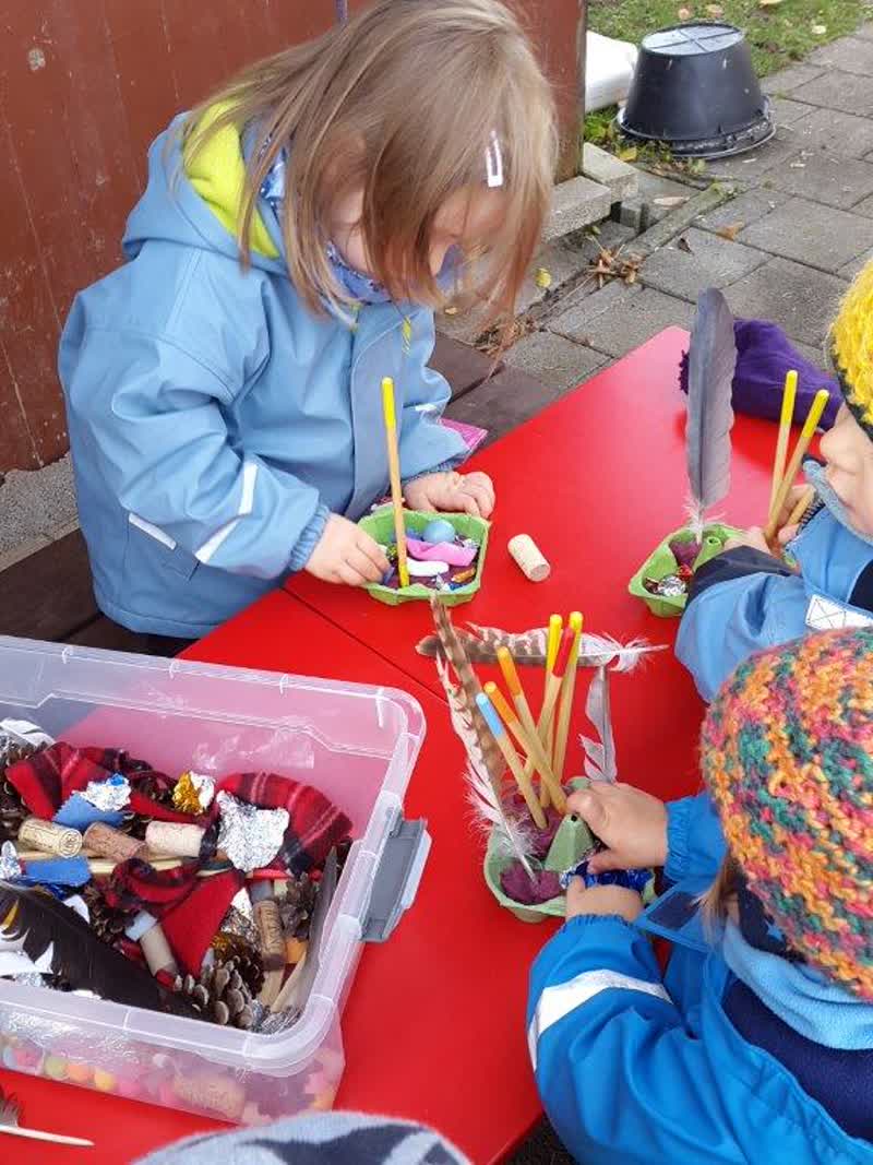 Es wird auch gespielt, mit verschiedenen Materialien gewerkt, gesungen, gemalt, geknetet, gelärmt und Geschichten erzählt.